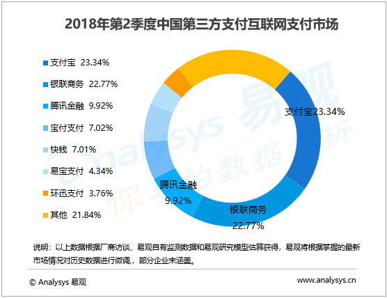 支付寶繼續(xù)依賴增速較快的電商業(yè)務支撐,在金融、教育以及個人類業(yè)務穩(wěn)步發(fā)展的前提下,交易份額保持第一。騰訊金融在維持集團內(nèi)部原有存量之外,積極開拓第三方行業(yè)服務,得益于其占領絕對優(yōu)勢的游戲、虛擬商品等市場支持,本季度所占市場份額達到9.92%。