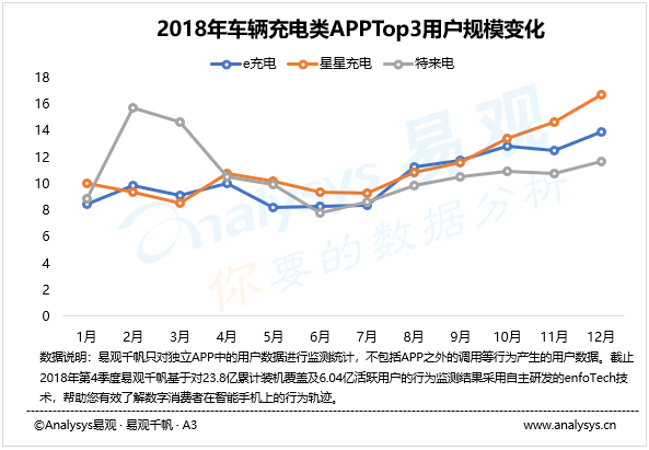 在車(chē)輛充電類(lèi)APP中,星星充電、e充電、特來(lái)電是第一梯隊(duì)的充電平臺(tái),其充電樁布局類(lèi)型各有側(cè)重,同時(shí)各家都將充電技術(shù)作為研發(fā)的核心。其中星星充電作為主打私人充電樁共享的平臺(tái),在2018年用戶規(guī)模增速最快,從11月份開(kāi)始成為了第一大車(chē)輛充電平臺(tái)。星星充電在2018年大力加強(qiáng)核心器件的自主化研發(fā),開(kāi)發(fā)雙向充電技術(shù),使電動(dòng)汽車(chē)存儲(chǔ)的電可以輕松轉(zhuǎn)接,實(shí)現(xiàn)車(chē)輛的移動(dòng)充電和共享充電。