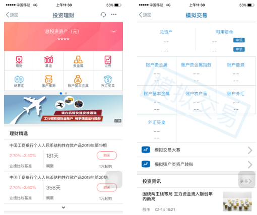 (4)投資理財—涵蓋各種投資產(chǎn)品、提供“模擬交易”功能