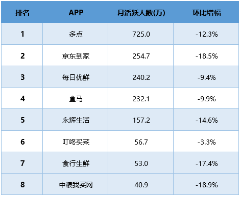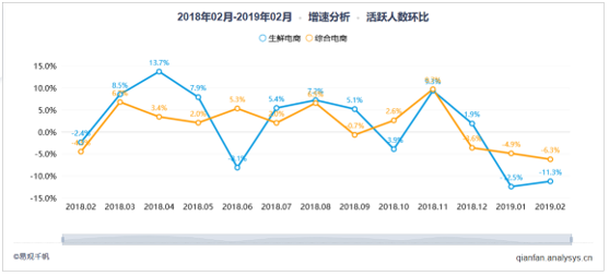 生鮮電商活躍人數(shù)環(huán)比增速分析