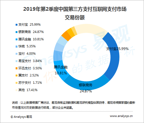 支付寶二季度依靠電商和金融服務(wù)等行業(yè)的支撐,交易規(guī)模繼續(xù)保持行業(yè)第一位置。其自有場景中,阿里等電商巨頭的財報均披露了良好的交易增幅,為其互聯(lián)網(wǎng)在線支付交易規(guī)模持續(xù)增長打下良好基礎(chǔ)。騰訊金融則得益于對游戲場景的控制以及商戶服務(wù)的增加,在開放平臺的帶動下,本季度互聯(lián)網(wǎng)支付交易規(guī)模保持穩(wěn)定。