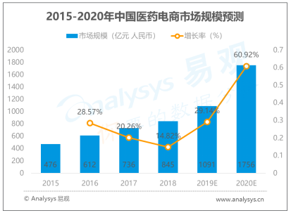根據(jù)Analysys易觀市場監(jiān)測數(shù)據(jù)顯示,2018年中國醫(yī)藥電商市場規(guī)模達(dá)843億元,相較2017年的736億元,同比上漲14.82%。受網(wǎng)售處方藥合規(guī)、醫(yī)保線上線下統(tǒng)一、鼓勵醫(yī)藥電商發(fā)展等多個政策利好影響,未來兩年市場規(guī)模增速有望大幅增長。