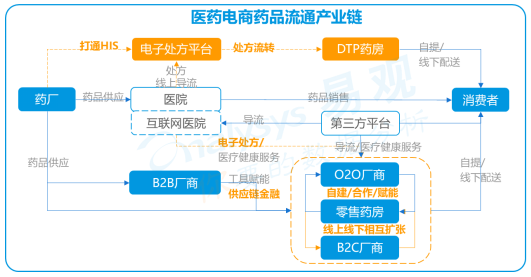 伴隨處方外流政策逐步落地,未來市場將在處方藥市場中展開激烈競爭?!毒V要》中指出,建立互聯(lián)網(wǎng)診療處方信息與藥品零售消費(fèi)信息互聯(lián)互通、實時共享的渠道,支持在線開具處方藥品的第三方配送。從醫(yī)藥電商流通產(chǎn)業(yè)鏈上看,電子處方流轉(zhuǎn)平臺和互聯(lián)網(wǎng)醫(yī)院將成為處方外流的主要來源,與其成為廠商爭奪重點。Analysys分析認(rèn)為,未來,醫(yī)院信息化廠商與大型醫(yī)藥B2B廠商有望在未來達(dá)成戰(zhàn)略性合作,從而確保雙方在未來電子處方平臺的運(yùn)營中利益共享。
