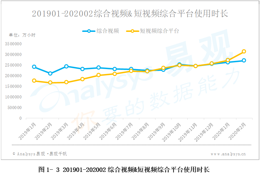 根據(jù)Analysys易觀千帆數(shù)據(jù)監(jiān)測,在2019年9月移動端短視頻綜合平臺行業(yè)用戶使用時長首次超過綜合視頻行業(yè)用戶使用時長,預(yù)測從2020年開始短視頻平臺與綜合視頻平臺之間的用戶使用時長差距將進一步拉開,短視頻對用戶時間和注意力的獲取能力在數(shù)據(jù)層面將得到更清晰的印證。