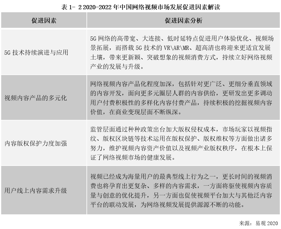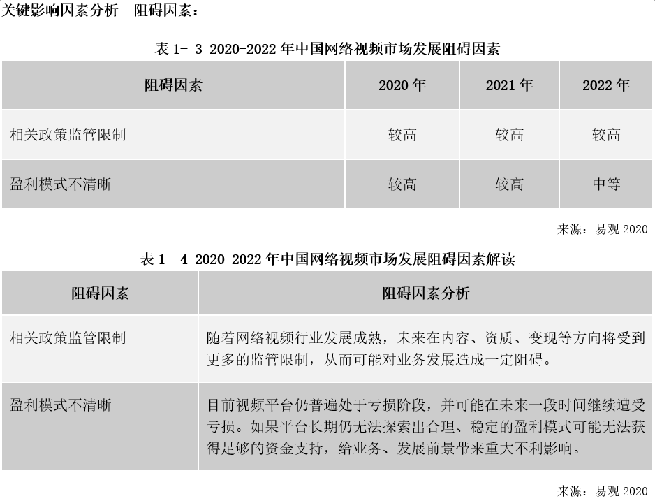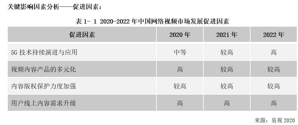 Analysys易觀分析認為,未來三年影響中國網(wǎng)絡(luò)視頻市場發(fā)展的主要因素如下: