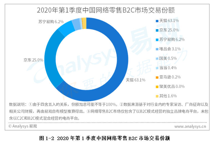 B2C網(wǎng)絡(luò)零售:是指企業(yè)借助網(wǎng)絡(luò)的形式向消費(fèi)者銷售產(chǎn)品的商業(yè)模式。常規(guī)的數(shù)據(jù)統(tǒng)計(jì)里不包括生產(chǎn)商自建的平臺(tái)。