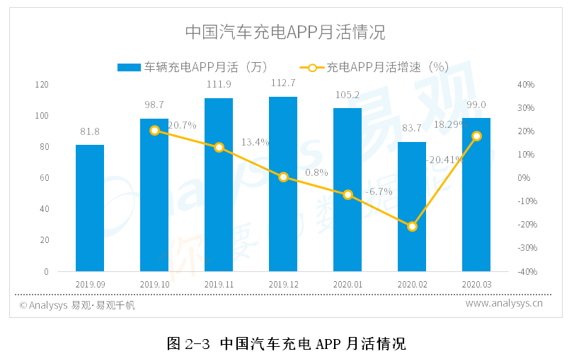 在充電服務(wù)平臺方面,據(jù)易觀千帆數(shù)據(jù)顯示,2020年3月,充電APP頭部平臺特來電、星星充電、e充電(國家電網(wǎng)旗下APP)三家的月活分別為45.2萬、32.8萬、31.0萬,三家頭部平臺月活皆已經(jīng)恢復(fù)到疫情前80%以上。