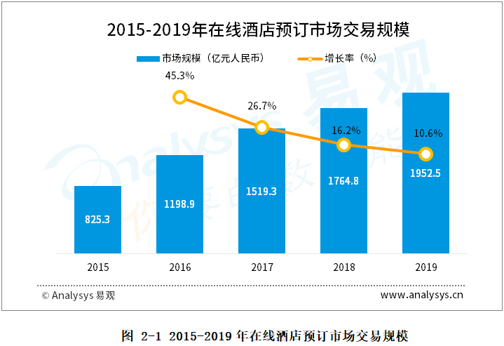 2.2中國在線酒店預(yù)訂市場交易規(guī)模增速放緩,酒店數(shù)量快速增長,競爭加劇