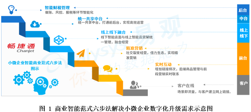 “商業(yè)范式六步法”從前端的客戶鏈接到后臺的智能財稅管理,提供了一整套的小微企業(yè)數(shù)字化轉(zhuǎn)型、智能+升級的解決方案。將引領(lǐng)行業(yè)服務(wù)商探索如何解決小微企業(yè)全面數(shù)字化升級面臨的相對重要且日益凸顯的各個方面問題,也引導(dǎo)小微企業(yè)借助云服務(wù)模式實現(xiàn)一體化運營,使得數(shù)據(jù)、資源能夠以“數(shù)字化形態(tài)”在前臺、中臺、后臺、線上、線下等環(huán)節(jié)順暢流動。