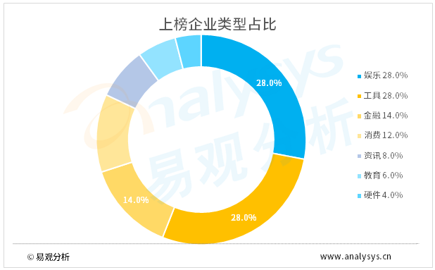 l 從企業(yè)類型來看,上榜的上市企業(yè)仍以金融、娛樂居多,然后是消費(fèi)和工具類。