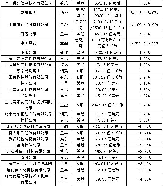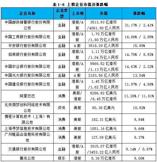 榜單摘錄:上榜企業(yè)市值及漲跌幅