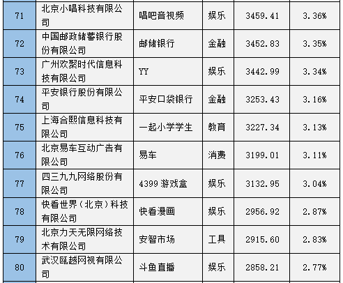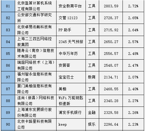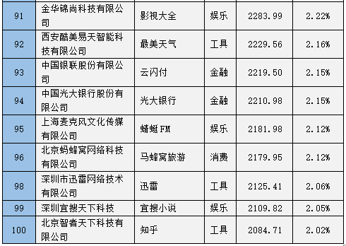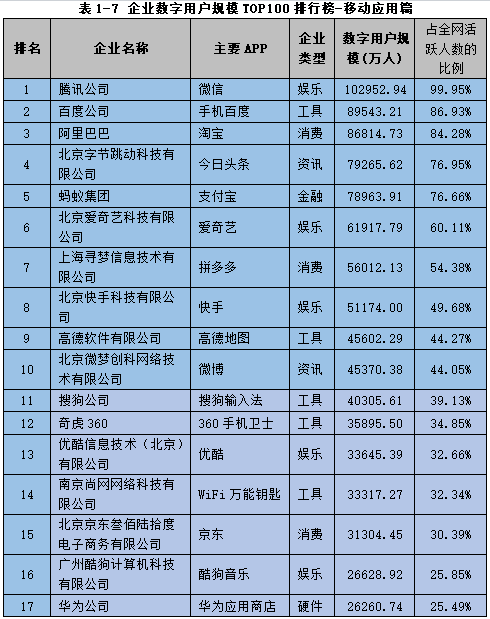 企業(yè)數(shù)字用戶規(guī)模TOP100排行榜—移動(dòng)應(yīng)用篇