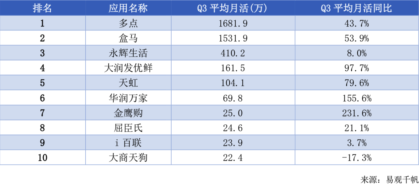 2020年Q3零售商超O2O應(yīng)用TOP榜單