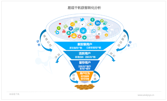 易觀千帆致力于移動(dòng)互聯(lián)網(wǎng)產(chǎn)品分析,為企業(yè)評估渠道價(jià)值、營銷活動(dòng)獲客力度及轉(zhuǎn)化效果提供精準(zhǔn)的數(shù)據(jù)支持,幫助企業(yè)在運(yùn)營中精細(xì)掌握每一個(gè)環(huán)節(jié),延長用戶生命周期,提高用戶生命周期價(jià)值。