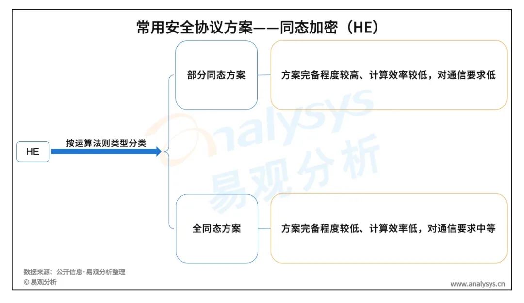 在多方安全計(jì)算的實(shí)際應(yīng)用中,根據(jù)分布式多方安全計(jì)算對(duì)性能的要求,會(huì)選擇不同的常用安全協(xié)議方案。多方安全計(jì)算常用安全協(xié)議方案在實(shí)現(xiàn)難度和性能表現(xiàn)方面都存在很大差異,易觀分析建議技術(shù)使用方在分布式多方安全計(jì)算的實(shí)際應(yīng)用中應(yīng)關(guān)注自身現(xiàn)有和未來規(guī)劃的計(jì)算與通信能力,結(jié)合常用安全協(xié)議方案的完備程度,選擇合適的安全協(xié)議方案。