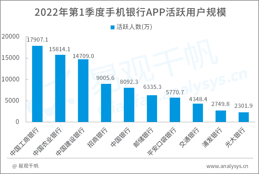 圖 1-1 2022年第1季度手機銀行APP活躍用戶規(guī)模