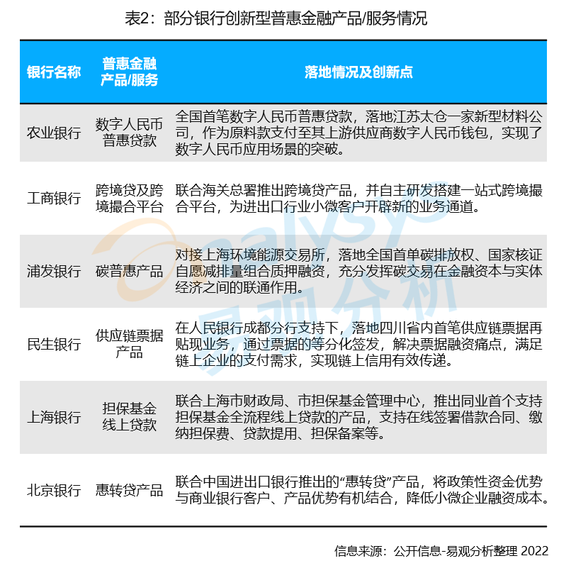 近幾年一些商業(yè)銀行為了打破產(chǎn)品同質(zhì)化的局面,在普惠金融領(lǐng)域進(jìn)行有益探索,通過數(shù)字化風(fēng)控、數(shù)字化營銷手段的驅(qū)動(dòng),尋找客群和金融需求的差異點(diǎn),打造了多個(gè)具有自身特色的普惠金融創(chuàng)新型產(chǎn)品。