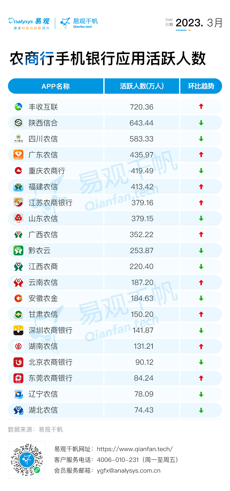 易觀千帆 | 2023年3月銀行APP月活躍用戶規(guī)模盤點(diǎn)