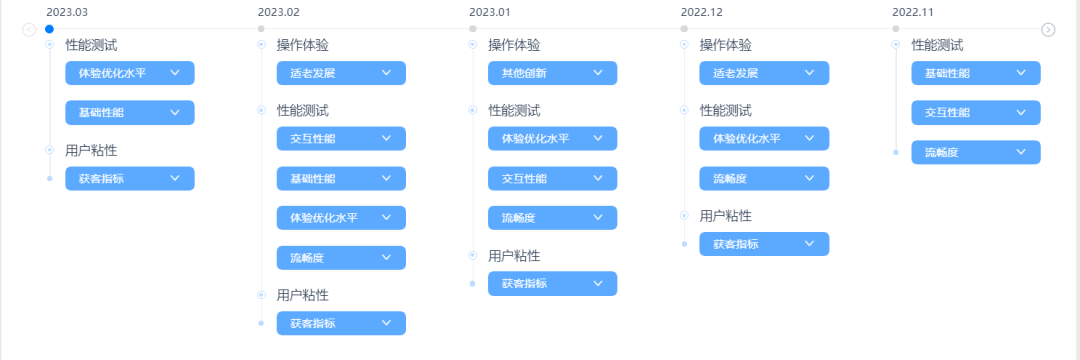 同時,通過對界面設計進行多維度、多細節(jié)的系統(tǒng)切入,關注操作、性能的極致體驗,結合持續(xù)的追蹤評分數(shù)據(jù),可以量化每一個發(fā)版的用戶體驗得分,評估當次發(fā)版帶來的體驗效果,針對專項優(yōu)化的具體體驗指標,細分查看細項指標的趨勢,評估優(yōu)化效果。進而從根本上提升用戶留存率,為進一步挖掘用戶價值奠定基礎,并基于用戶體驗產(chǎn)品對標同業(yè)競爭對手,進而補足應用短板,發(fā)揮優(yōu)勢,促進業(yè)績增長。