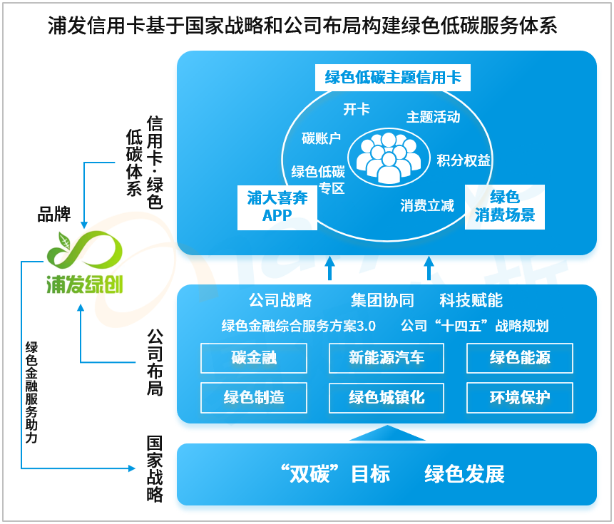 浦發(fā)信用卡“不忘初心”,順勢而為,堅定發(fā)展綠色金融助推“雙碳”目標?!皟蓵鄙险ぷ鲌蟾嬖俅螐娬{(diào)要加強綠色發(fā)展金融支持,綠色金融被提到前所未有的高度,金融機構(gòu)參與綠色金融助推雙碳目標是未來重要的戰(zhàn)略方向。浦發(fā)信用卡順勢而為,堅定打造綠色銀行的理念,明確自身踐行雙碳戰(zhàn)略的路線圖,延續(xù)“綠融萬物,共創(chuàng)未來”的初心,持續(xù)深化綠色金融綜合服務布局,進一步豐富“浦發(fā)綠創(chuàng)”品牌內(nèi)涵。目前,浦發(fā)銀行針對“雙碳”目標,已形成多層次的綠色金融發(fā)展戰(zhàn)略規(guī)劃體系,一是綠色金融服務的綜合布局,推出《綠色金融綜合服務方案 3.0 版》,打造具有創(chuàng)新性、領先性和專業(yè)性的“6+N”服務體系,逐步提高綠色金融在公司業(yè)務、零售業(yè)務、金融市場板塊和集團子公司業(yè)務的滲透度,構(gòu)建集團化、立體化、多層次、廣覆蓋的綠色金融服務體系;二是綠色金融創(chuàng)新產(chǎn)品與服務體系的布局,通過持續(xù)推動綠色產(chǎn)品創(chuàng)新,多維度參與碳市場建設,逐步打造基礎服務、產(chǎn)品創(chuàng)新、碳市場交易+做市、研究和能力建設四位一體碳金融業(yè)務布局。下一步,將提速綠色金融創(chuàng)新布局,持續(xù)創(chuàng)新綠色金融產(chǎn)品和業(yè)務模式,構(gòu)建綠色“專屬產(chǎn)品+標準產(chǎn)品”的服務體系,不斷鞏固在綠色金融領域的競爭優(yōu)勢,做強、做優(yōu)“浦發(fā)綠創(chuàng)”品牌。