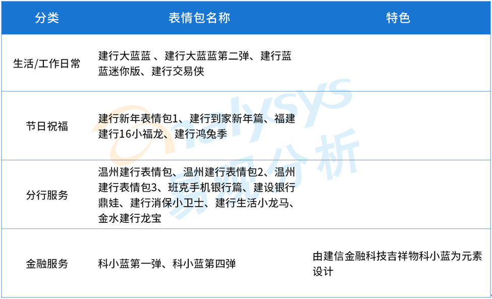 表1-2 建設(shè)銀行微信表情包匯總