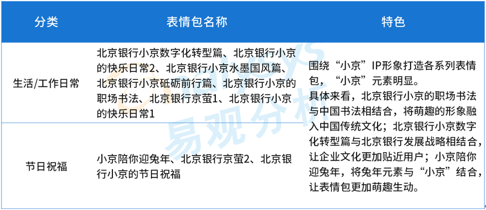 表1-4 北京銀行微信表情包匯總