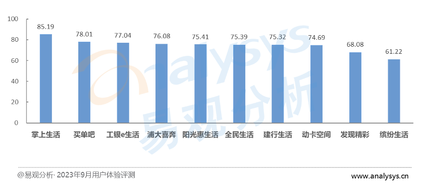 綜合得分:前五名競爭激烈,國有大行中工銀e生活、買單吧表現(xiàn)較好